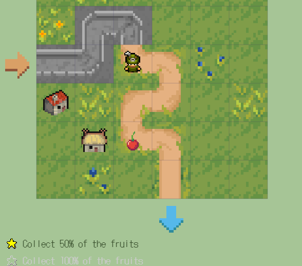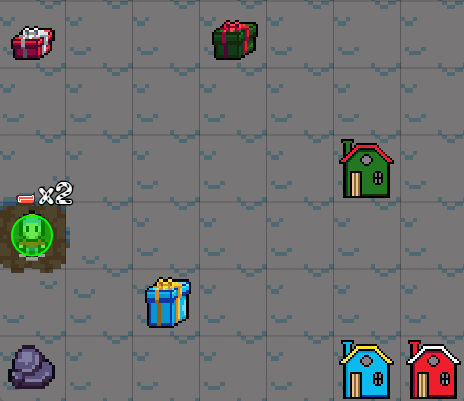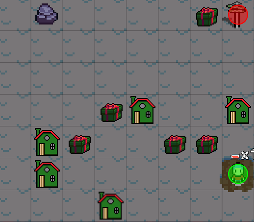 I created 3 types of present-house pairs, allowed up to 2 carts to follow the character, and set the total number of presents to n. The maximum number of moves was n, and the minimum number of moves was n. I initially planned to generate and provide 50 maps, but since there seemed to be no tutorial, I created a very simple text-based tutorial and made one 4x4 map, reducing the existing maps by one. As a result, I provided 1+49=50 maps for service.