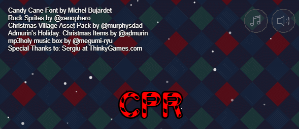 I decided to use the title Iād thought of before: CPR: Christmas Present Rush. It felt like a title that would catch peopleās attention while clearly conveying the theme. I used the Candy Cane font as the main font.