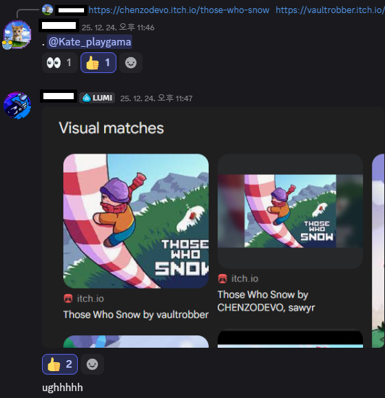 Issues regarding fraudulent participants were also actively discussed on Discord. The game jam had fewer than 50 participants. Several participants on Discord reported cases of fraudulent behavior where people created multiple bot accounts, made games for each account, participated in the game jam, gave low scores to other participantsā games and high scores to their own games. Naturally, the smaller the number of participants, the more effective this is. If there are rewards, they can obtain them, and even without rewards, achieving good results in a game jam would be a plus for oneās career. With the advancement of generative AI, games that look like proper games can be made quickly, so it felt bitter that the environment has become easier for such fraudulent activities.